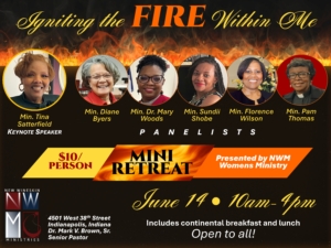 Join us as we’re hosted by the Women’s Ministry for a mini retreat. Let’s talk about igniting the fire of the Holy Spirit even in our everyday lives! Breakfast and lunch will be served. If your have any questions, feel free to contact Min. Sundii Shobe found on our website’s “meet the staff” page.